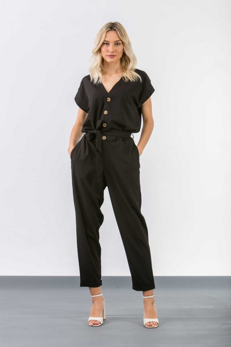 Ολόσωμη φόρμα σε κρεπ ύφασμα με κουμπιά και ζωνάκι.